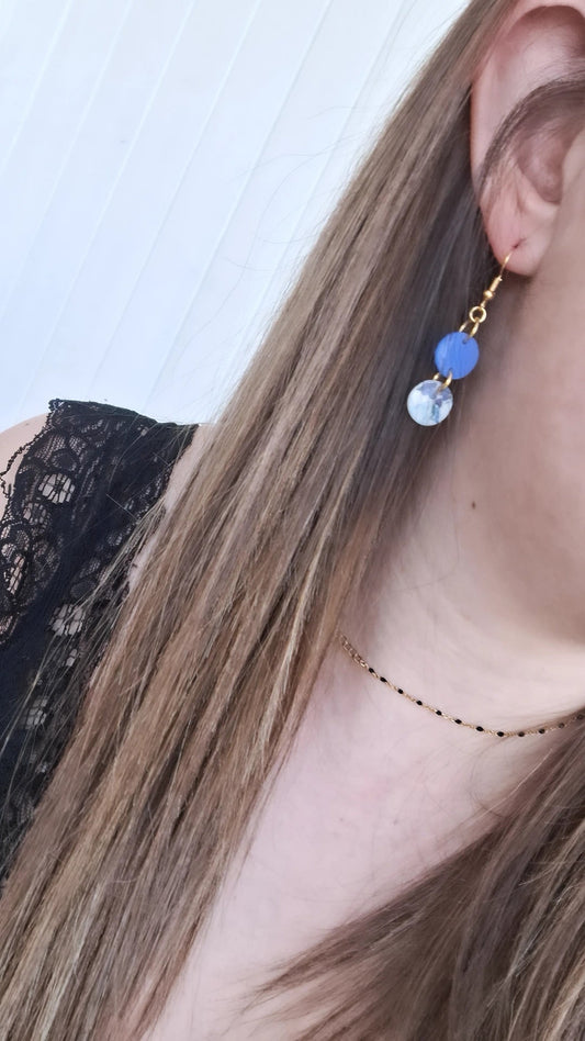 Boucle d'oreille - BLEU & BLANCHE version dorée