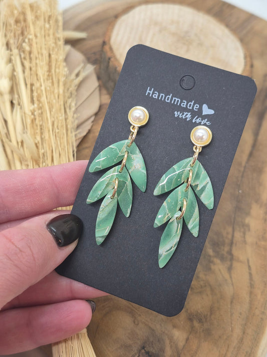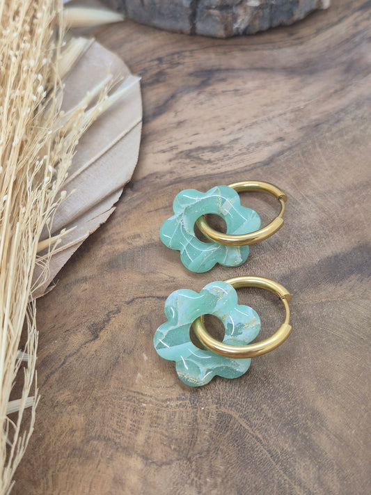 Boucle d'oreille Vert d'eau & Perle Nacré