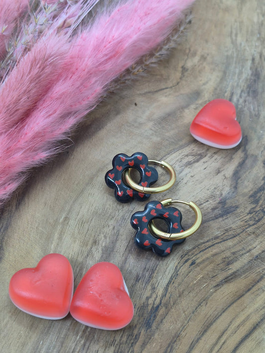 Pampille - Noir avec cœurs rouge