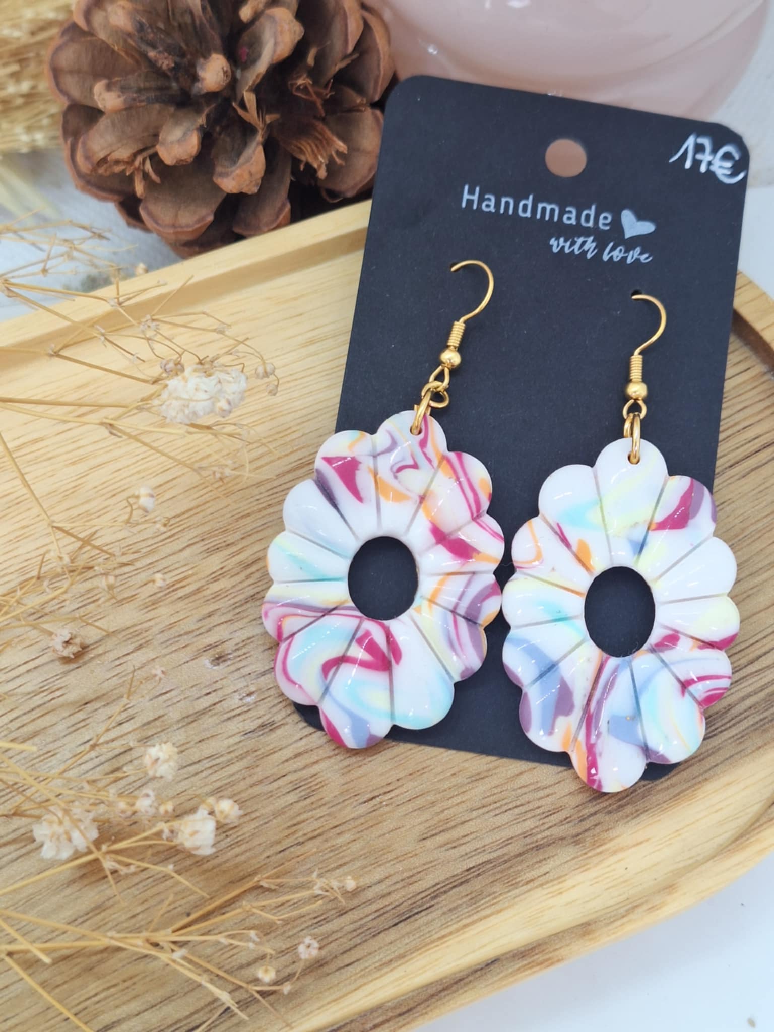 Jolie paire de boucle d'oreille. Cette paire donnera à votre tenue cette touche de d'originalité et d'élégance. Chaque pièce est réalisée à la main et à l’issue de plusieurs mélanges de couleurs, de techniques.