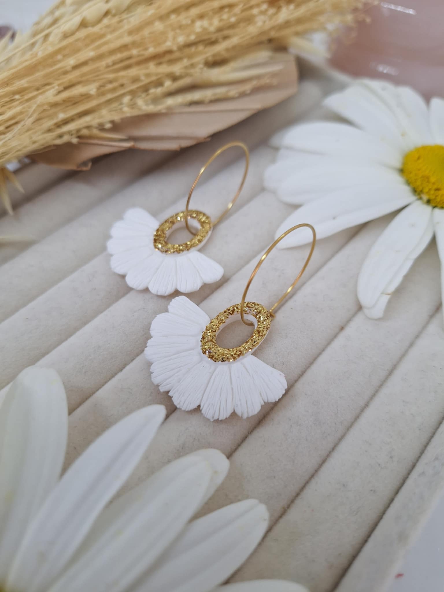 Superbe paire de créole 25 MM avec un modele texturé de couleur blanche. Cette paire donnera à votre tenue cette touche de d'originalité, d'élégance avec les paillettes dorées. Chaque pièce est réalisée à la main et à l’issue de plusieurs mélanges de couleurs, de techniques.