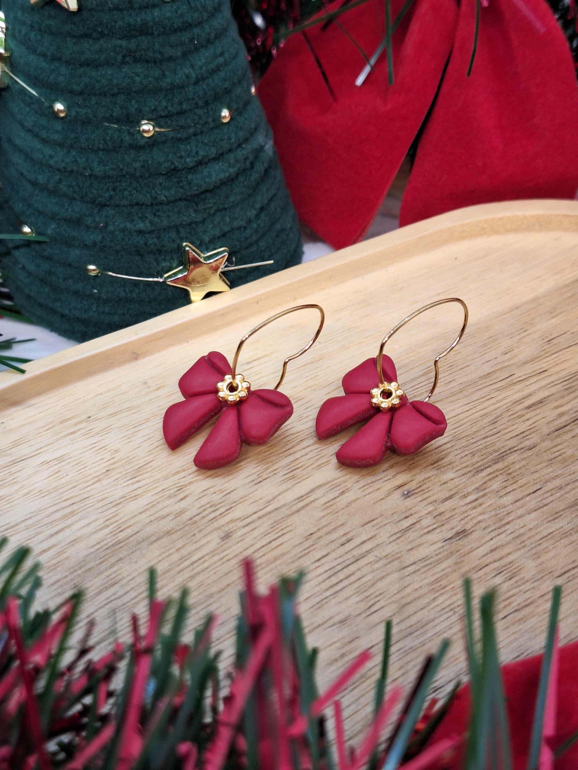 Nouvelle mignonne paire de creole en forme de coeur et son noeud rouge. Cette paire donnera à votre tenue cette touche de d'originalité et d'élégance. Chaque pièce est réalisée à la main et à l’issue de plusieurs mélanges de couleurs, de techniques.