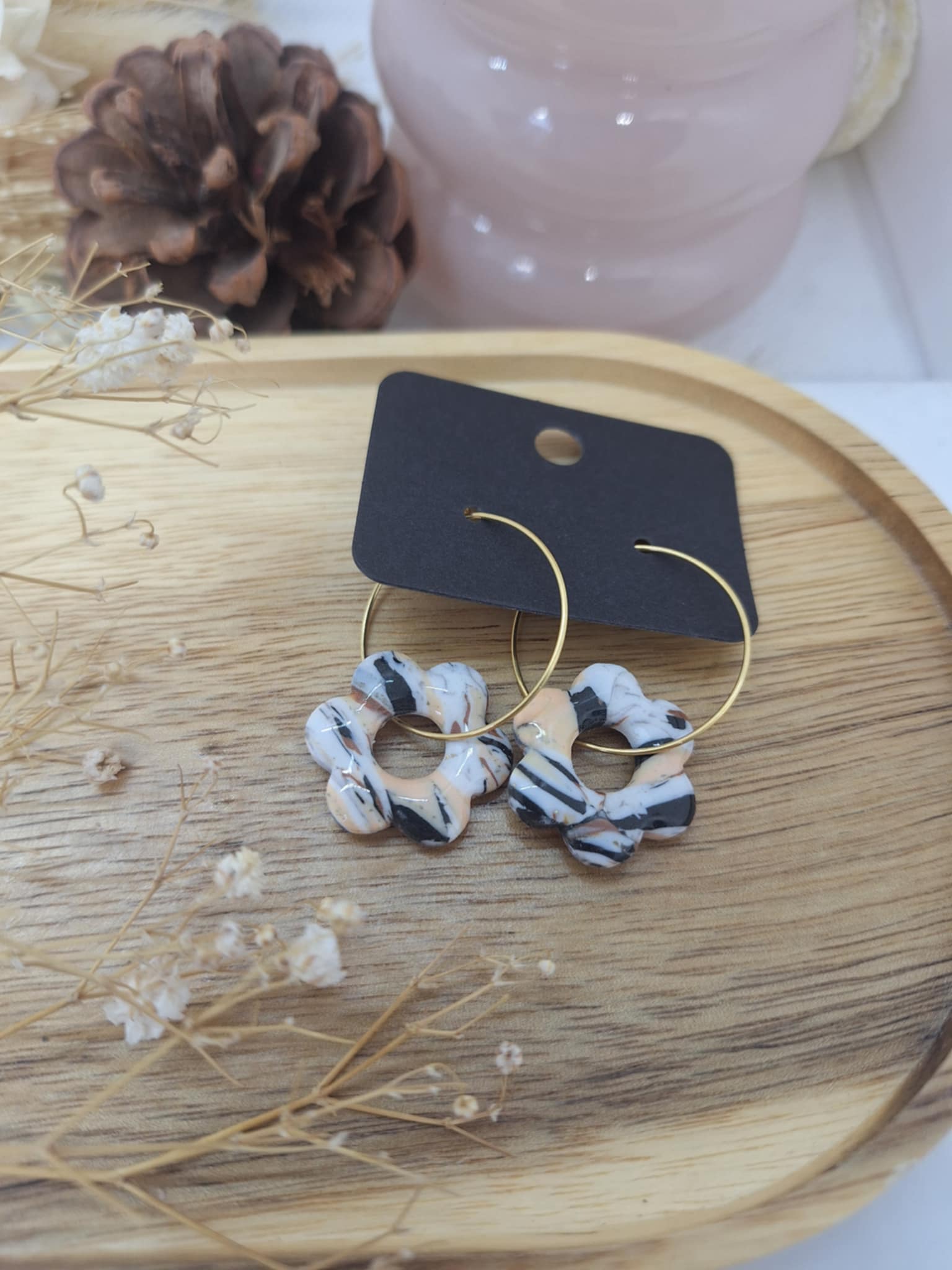 Jolie paire de créole interchangeable. Cette paire donnera à votre tenue cette touche de d'originalité et d'élégance. Chaque pièce est réalisée à la main et à l’issue de plusieurs mélanges de couleurs, de techniques.