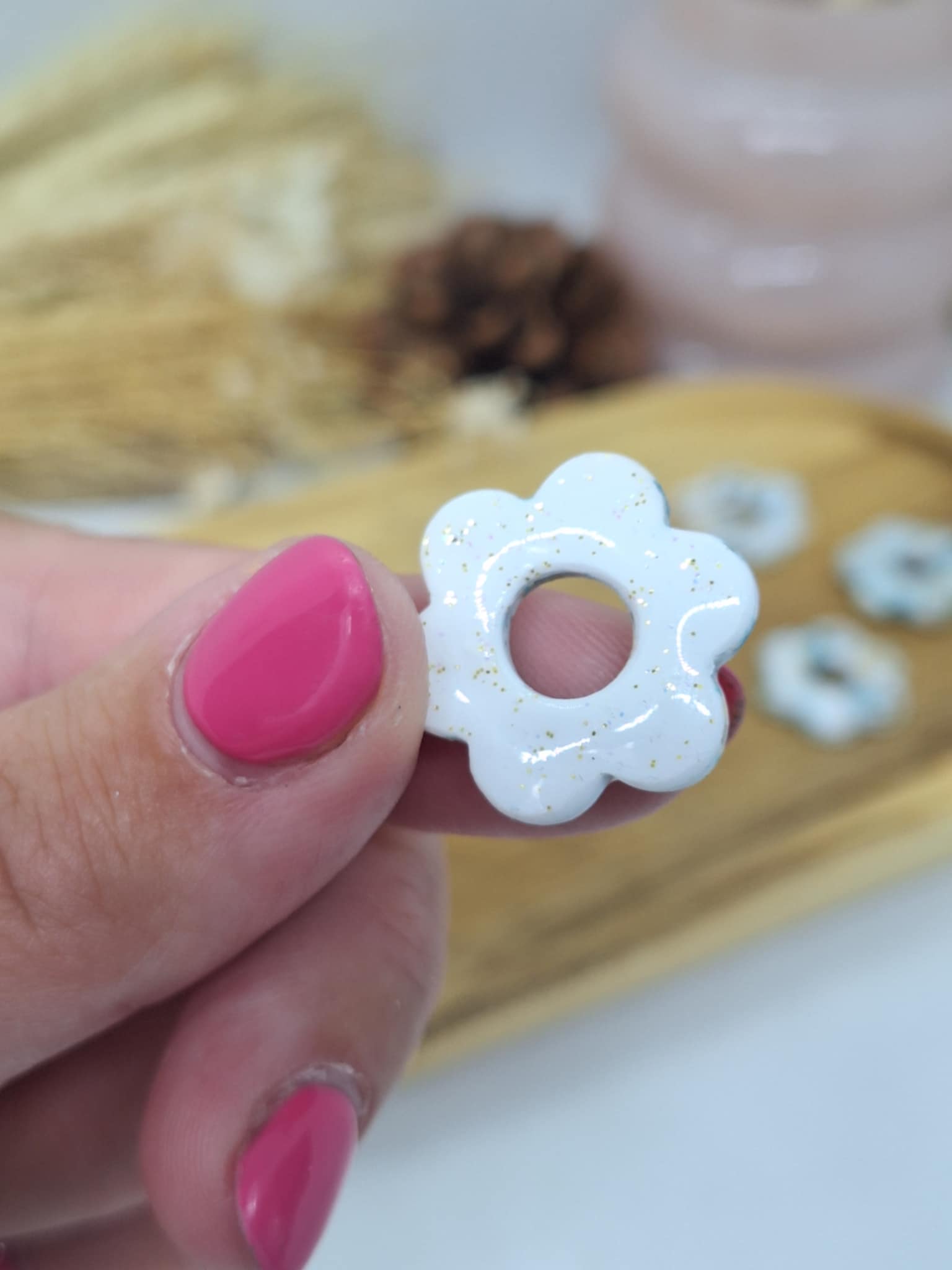 Matière: Argile polymère, résine et paillette pour l'arrière de la pampille.