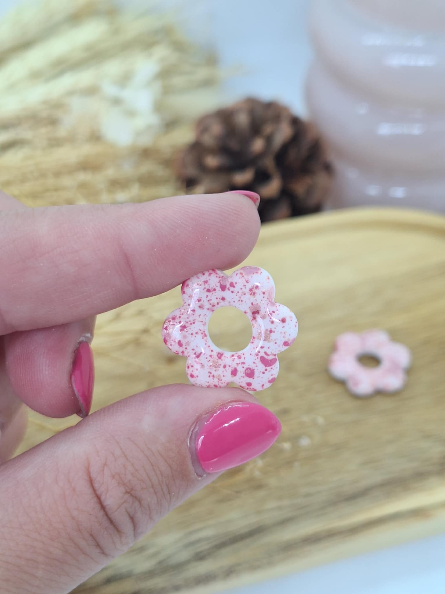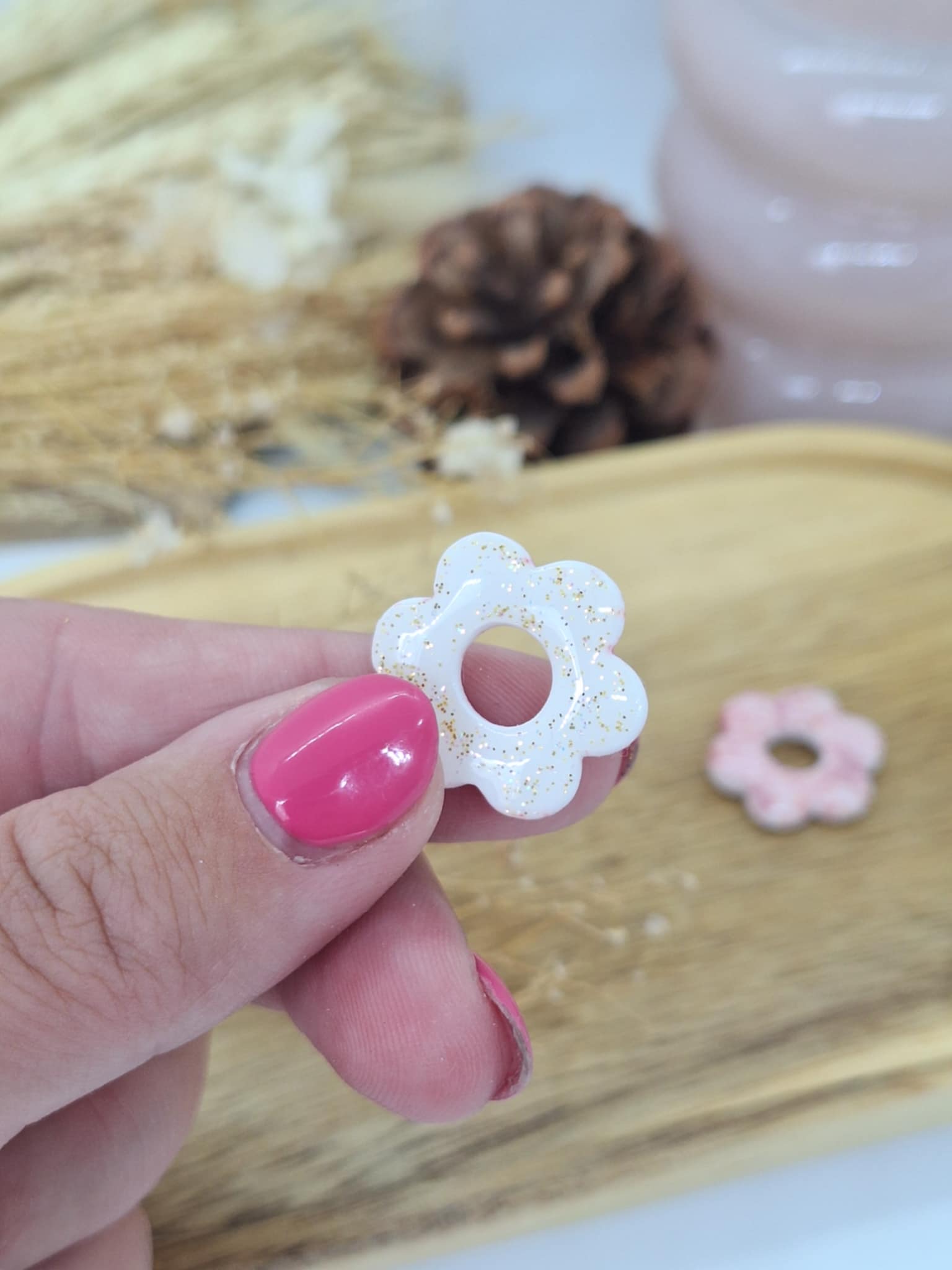 Matière: Argile polymère, résine et paillette pour l'arrière de la pampille.