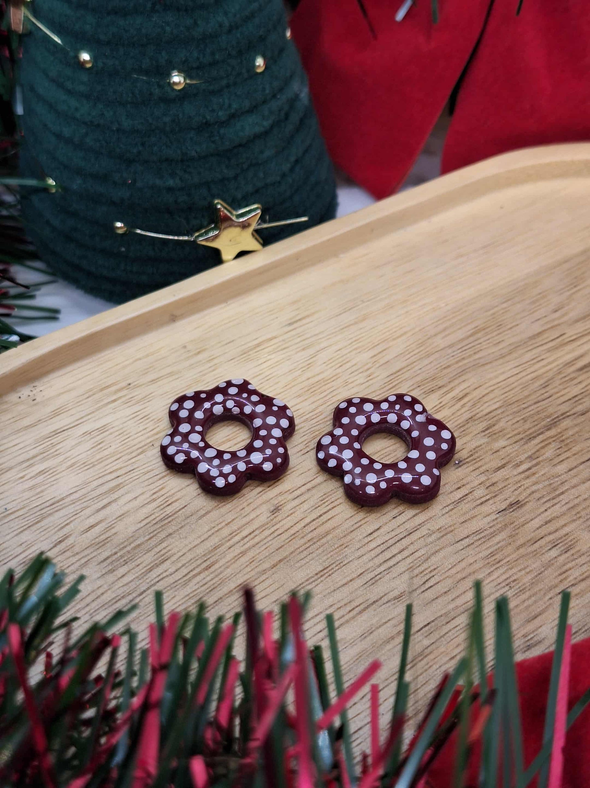 Pampille FLORA pour créole de couleur bordeaux à pois blanc. ( Pampilles vendues par paire)