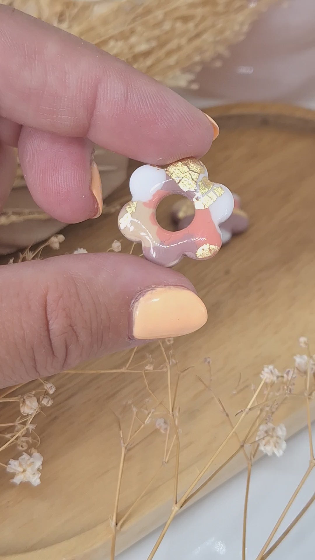 Matière: Argile polymère, résine, feuille dorée .