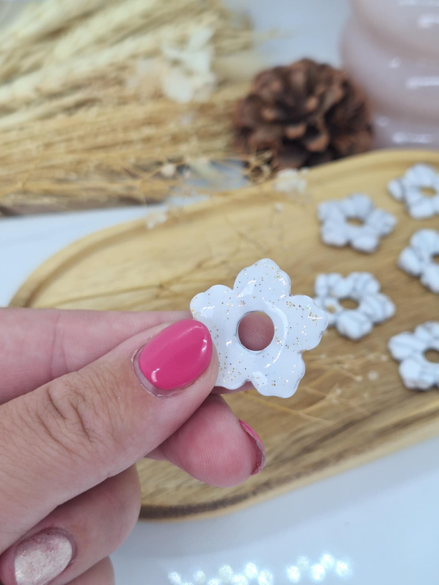 Matière: Argile polymère, résine et paillette pour l'arrière de la pampille.