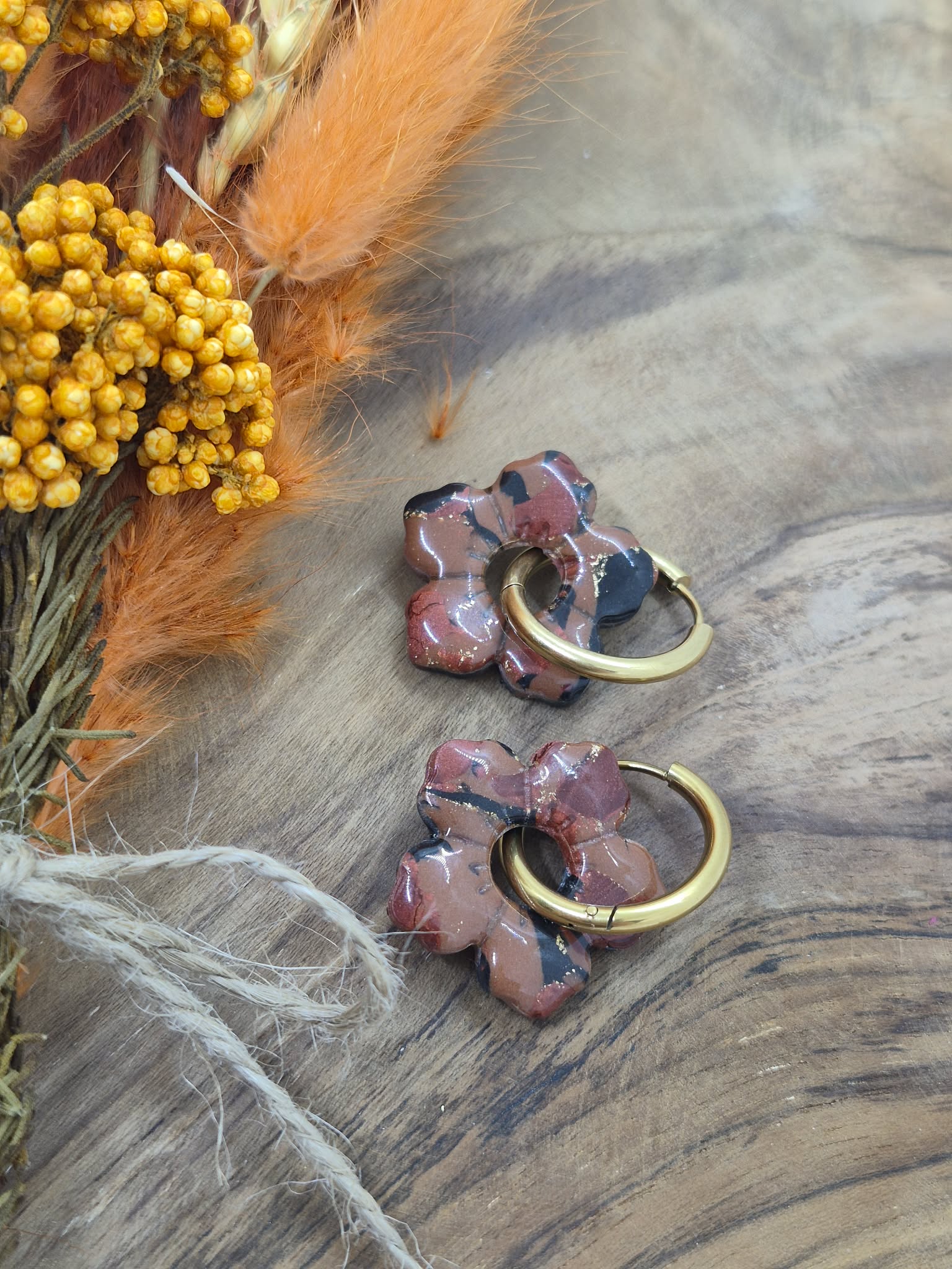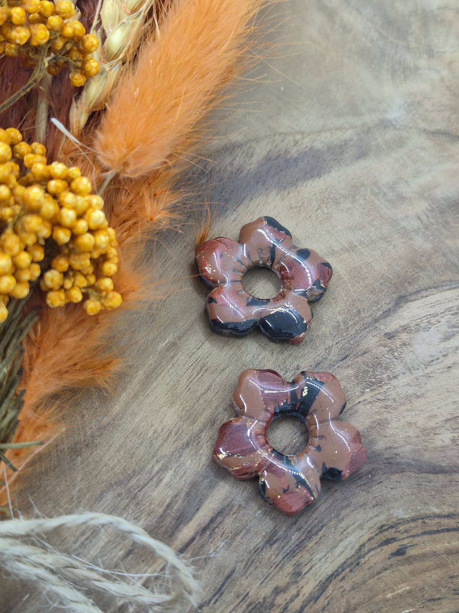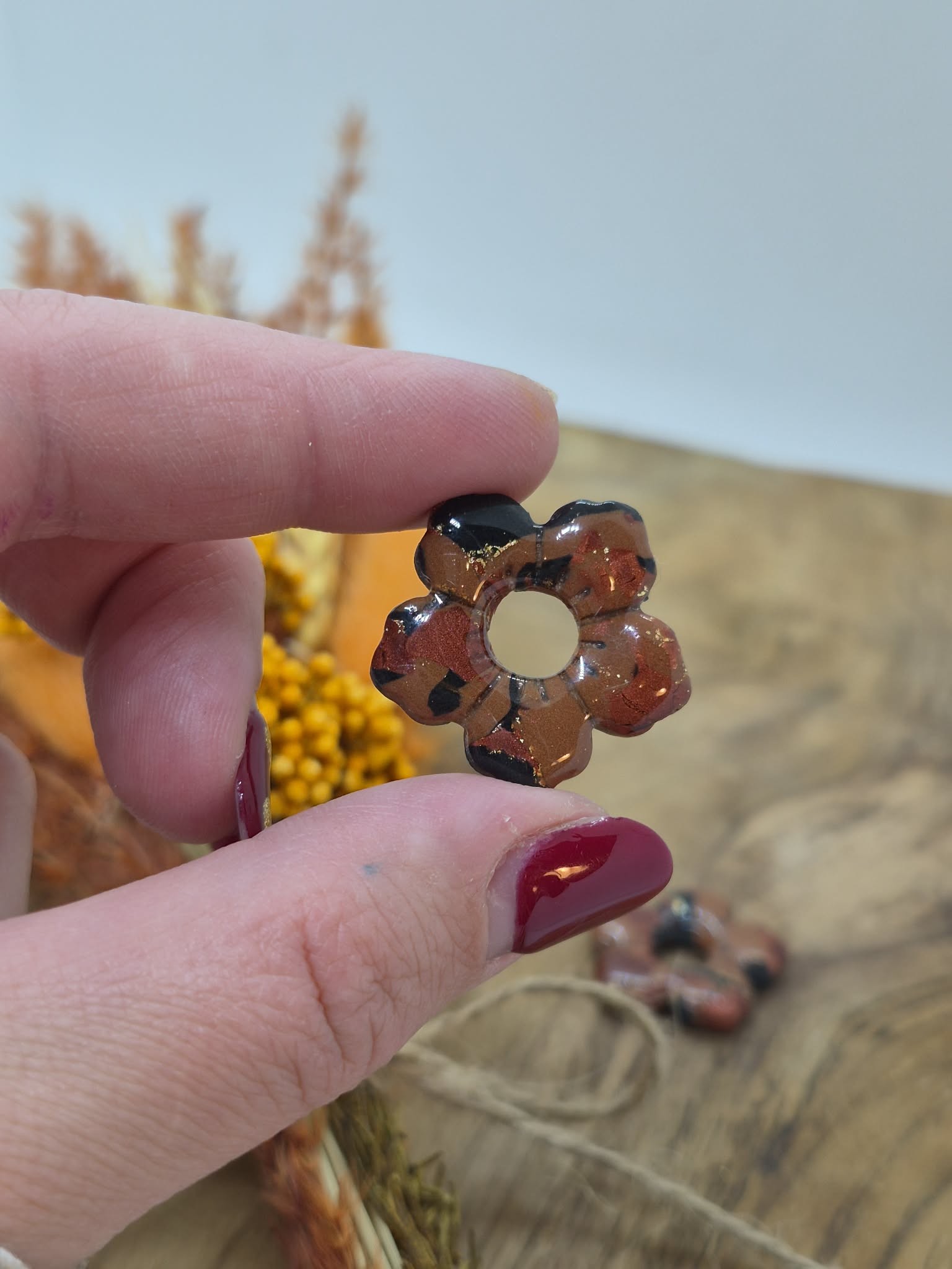 Matière: Argile polymère, résine, feuille dorée.