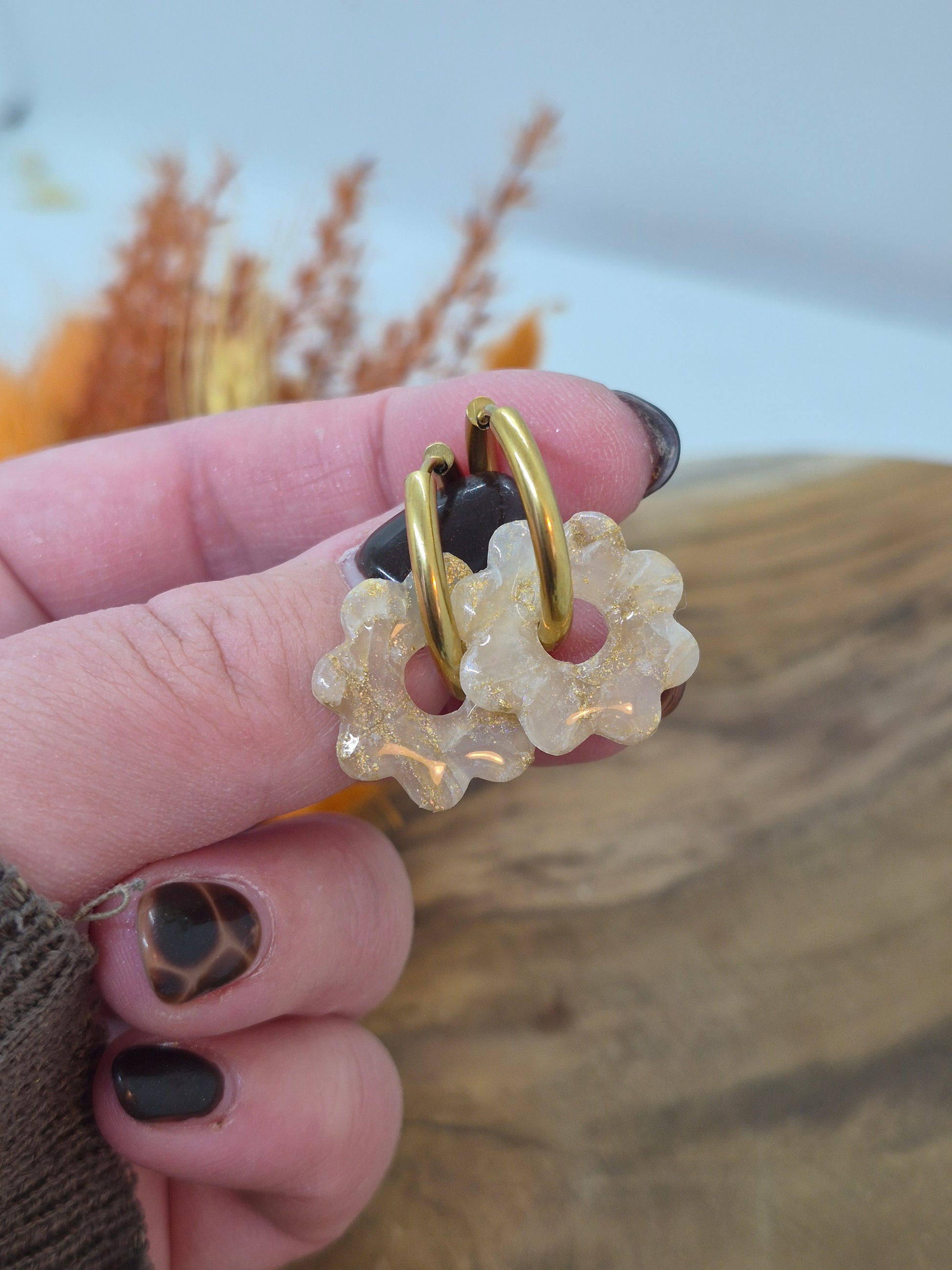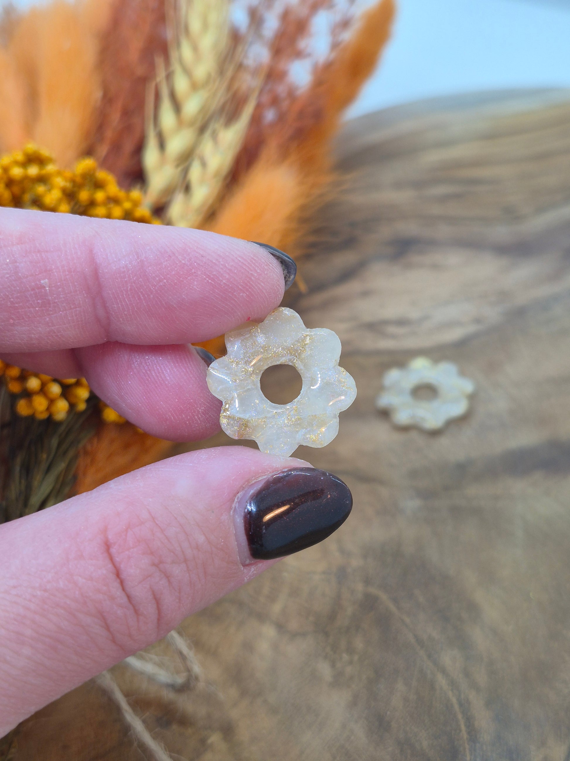 Matières utilisées : Argile polymère, résine, feuille dorée, poudre.