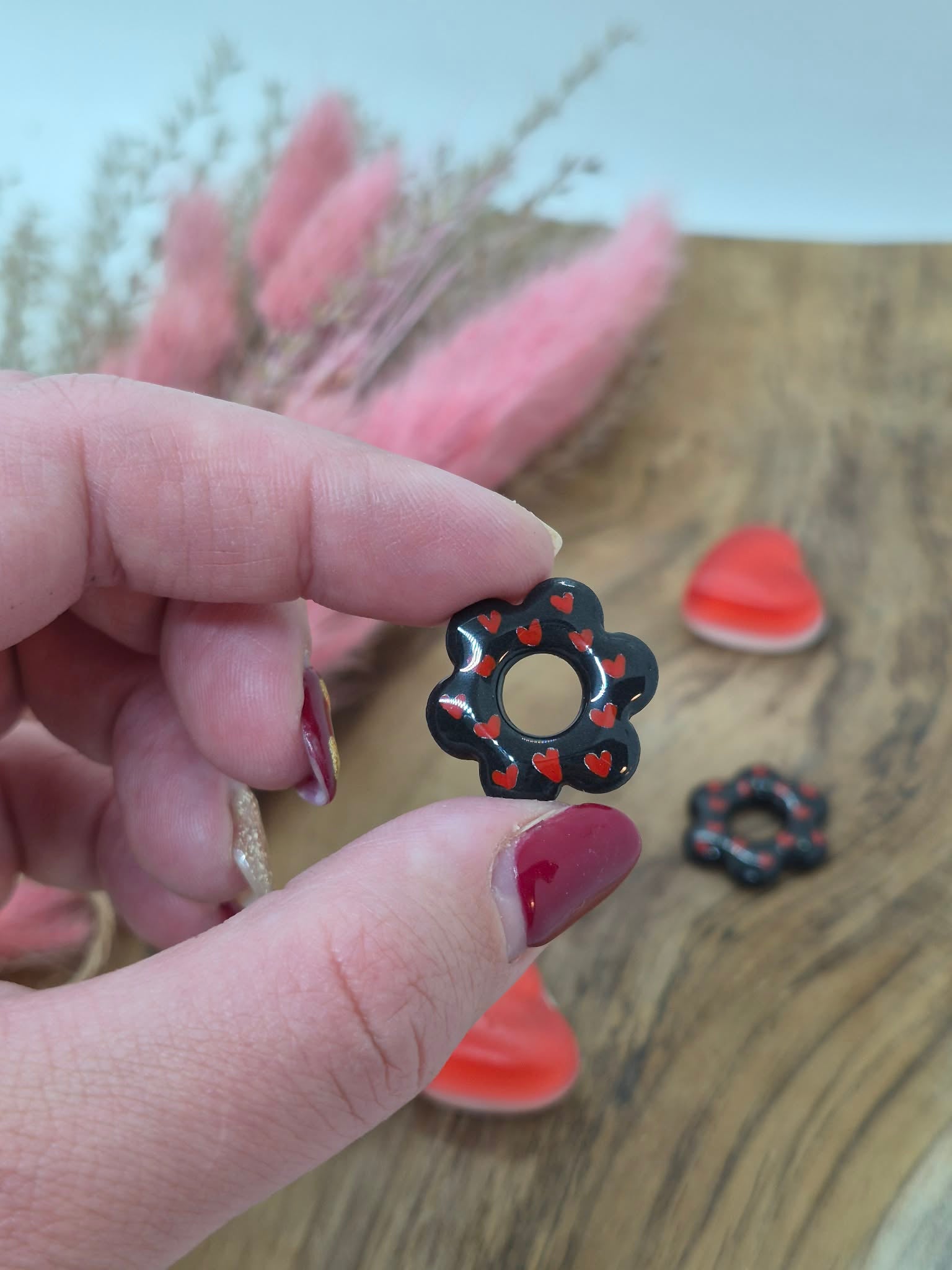 Pampille FLORA pour créole. Noir avec des cœurs rouge fait à la main.