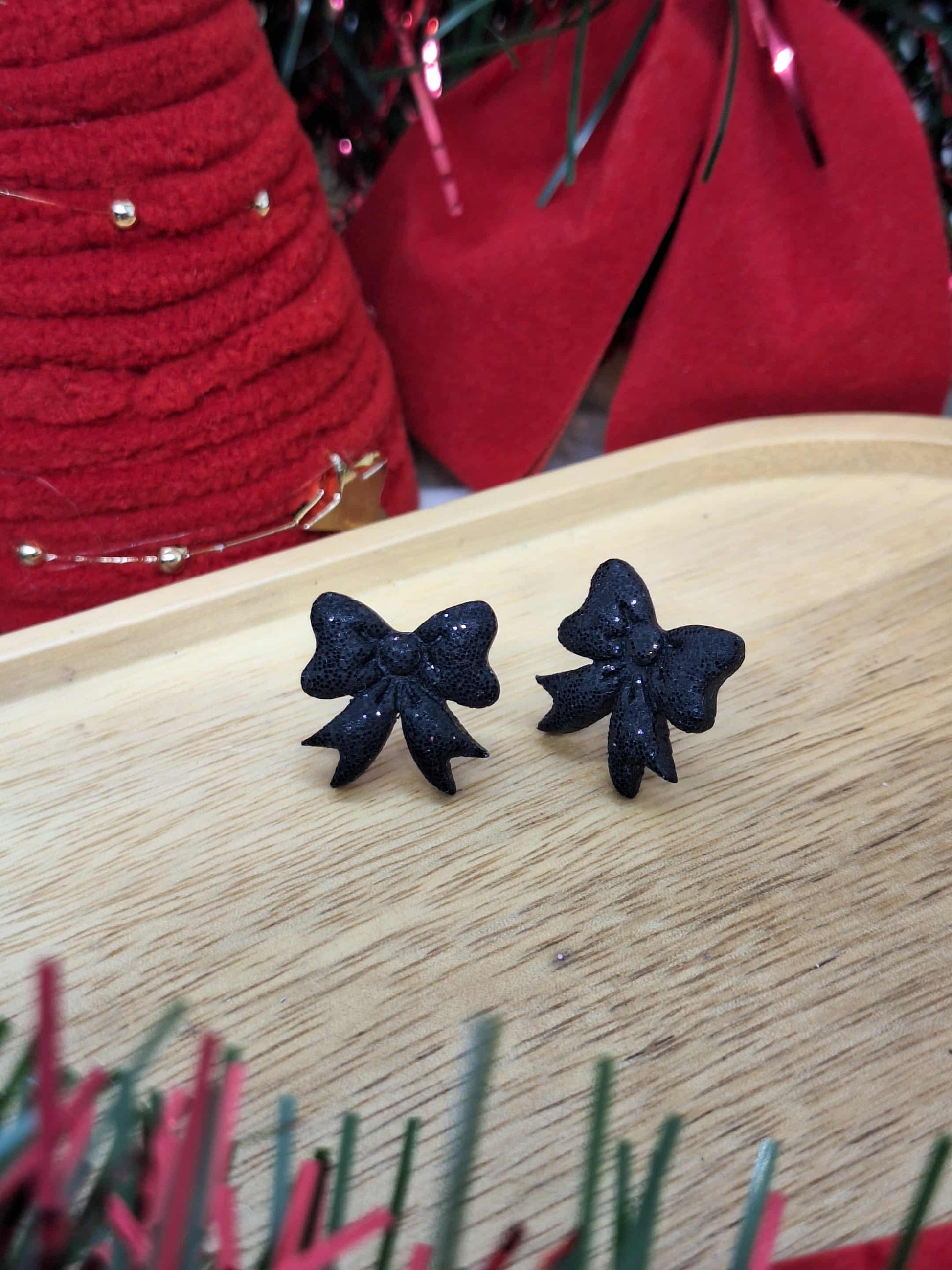 Mignonne paire de puce en forme de noeud à paillette noir. Cette paire donnera à votre tenue cette touche de d'originalité et d'élégance. Chaque pièce est réalisée à la main et à l’issue de plusieurs mélanges de couleurs, de techniques.
